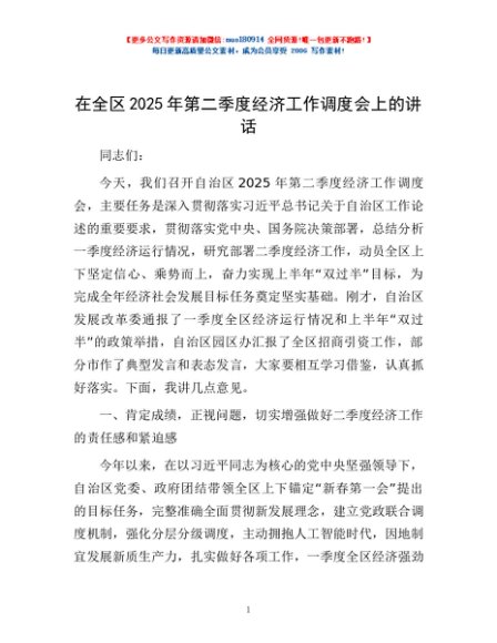 / 在全区2025年第二季度经济工作调度会上的讲话