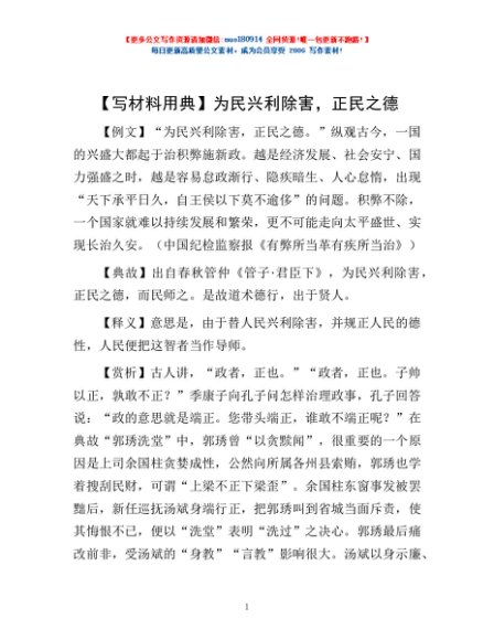 / 【写材料用典】为民兴利除害,正民之德