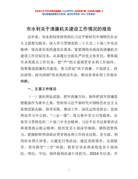 / 市水利关于清廉机关建设工作情况的报告