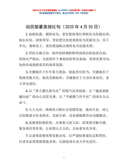/ 动员部署类排比句(2025年4月30日)