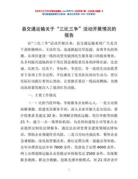 / 县交通运输关于“三比三争”活动开展情况的报告