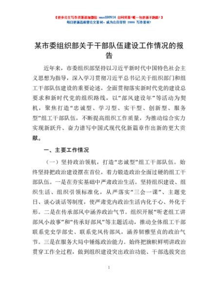 / 某市委组织部关于干部队伍建设工作情况的报告