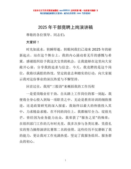 / 2025年干部竞聘上岗演讲稿