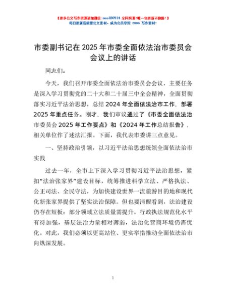 / 市委副书记在 2025年市委全面依法治市委员会会议上的讲话