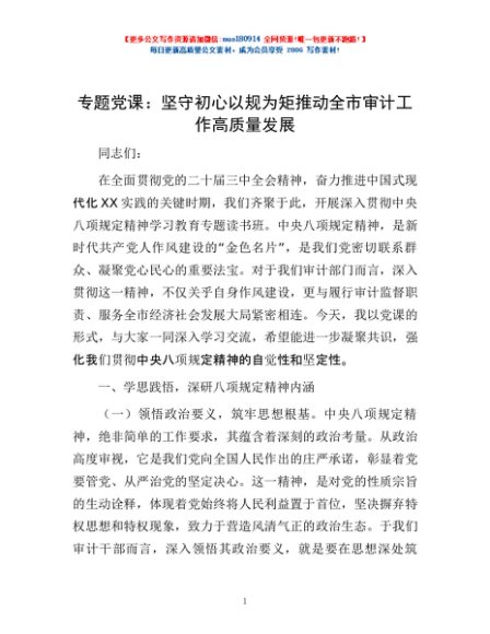 / 专题党课:坚守初心以规为矩 推动全市审计工作高质量发展