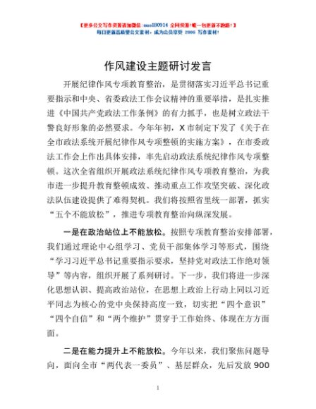 / 作风建设主题研讨发言