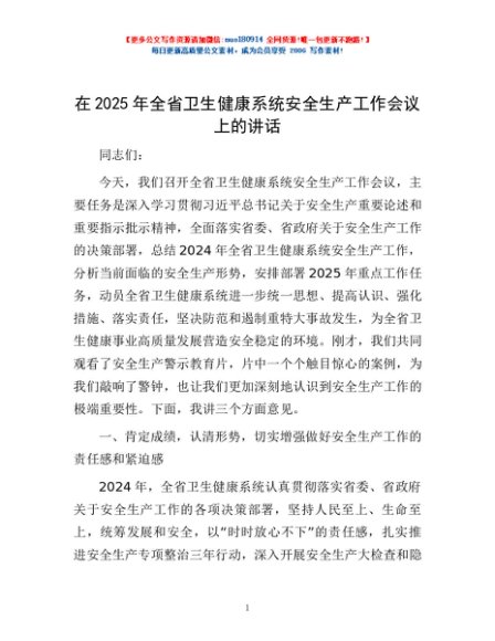 / 在2025年全省卫生健康系统安全生产工作会议上的讲话