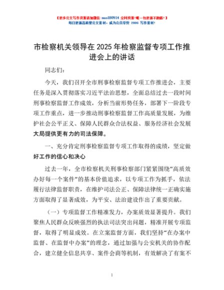 / 市检察机关领导在2025年检察监督专项工作推进会上的讲话
