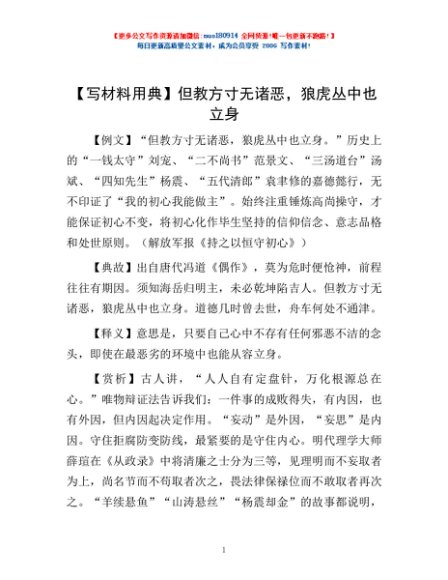 【写材料用典】但教方寸无诸恶,狼虎丛中也立身