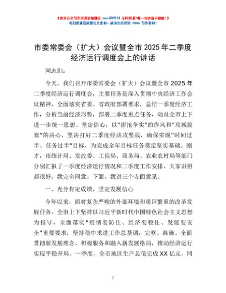 / 市委常委会(扩大)会议暨全市2025年二季度经济运行调度会上的讲话