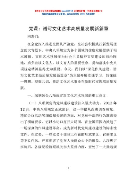 党课:谱写文化艺术高质量发展新篇章