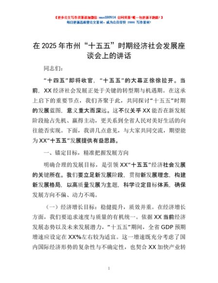 / 在2025年市州“十五五”时期经济社会发展座谈会上的讲话