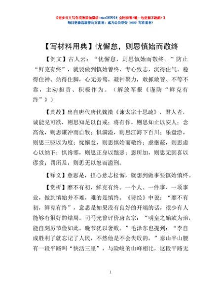 / 【写材料用典】忧懈怠,则思慎始而敬终