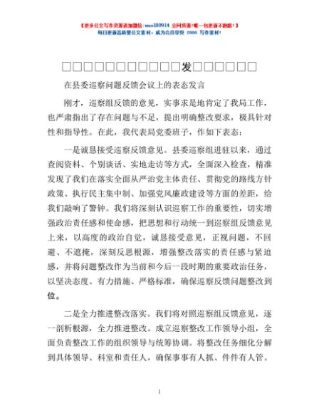 / 巡察工作问题反馈会表态发言和总结讲话