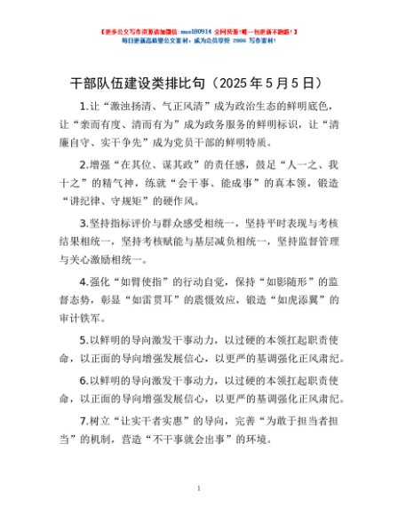 / 干部队伍建设类排比句(2025年5月5日)