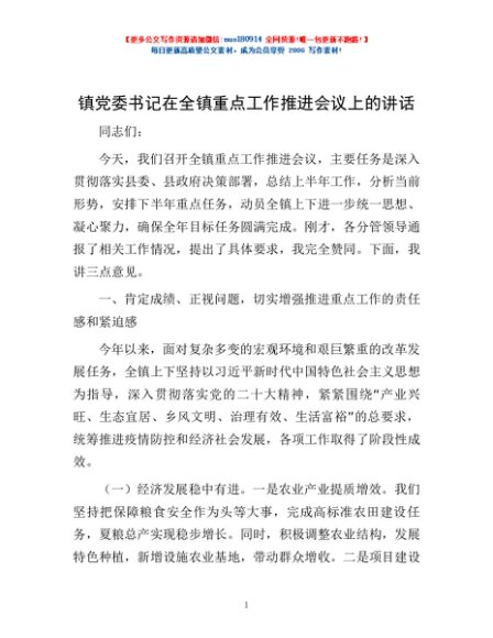 / 镇党委书记在全镇重点工作推进会议上的讲话