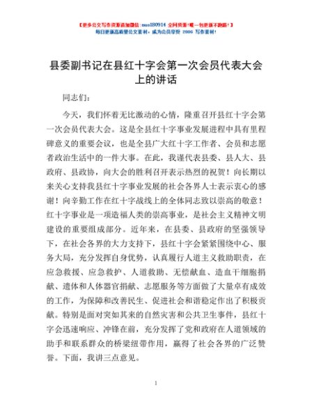 / 县委副书记在县红十字会第一次会员代表大会上的讲话