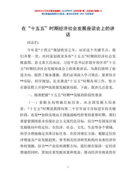 / 在“十五五”时期经济社会发展座谈会上的讲话
