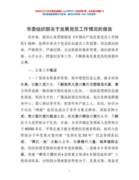 / 市委组织部关于发展党员工作情况的报告