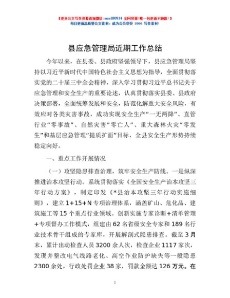 / 县应急管理局近期工作总结