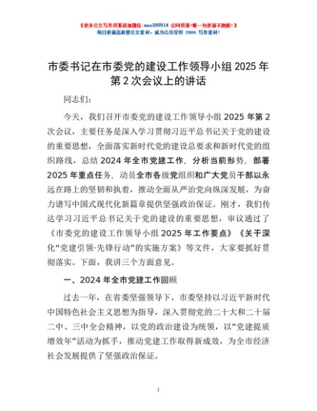 / 市委书记在市委党的建设工作领导小组2025年第2次会议上的讲话