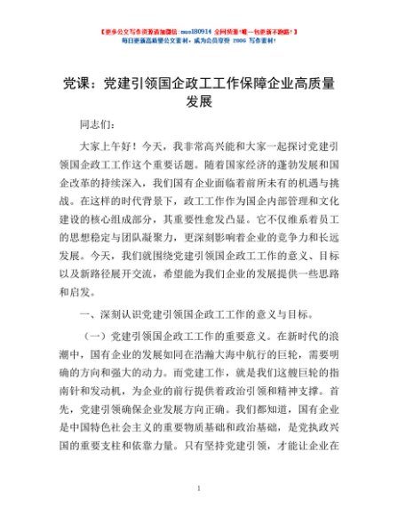 / 党课:党建引领国企政工工作 保障企业高质量发展