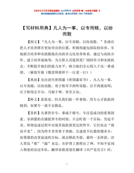 / 【写材料用典】凡人为一事,以专而精,以纷而散