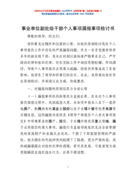 / 事业单位副处级干部个人事项漏报事项检讨书