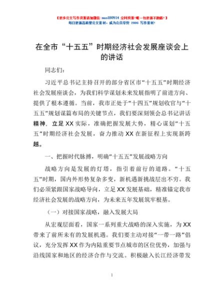 / 在全市“十五五”时期经济社会发展座谈会上的讲话