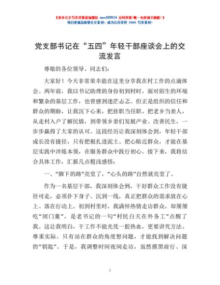 / 党支部书记在“五四”年轻干部座谈会上的交流发言