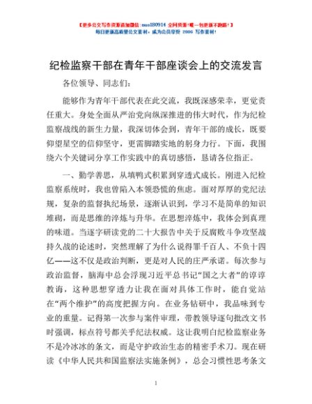 / 纪检监察干部在青年干部座谈会上的交流发言
