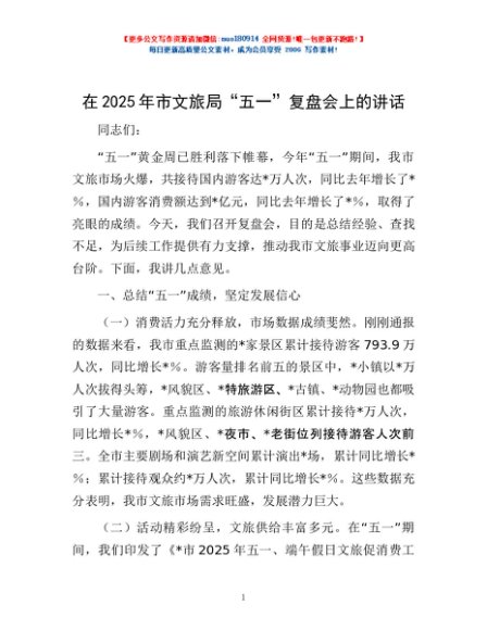 / 在2025年市文旅局“五一”复盘会上的讲话