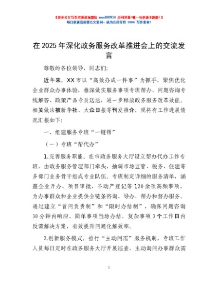 / 在2025年深化政务服务改革推进会上的交流发言