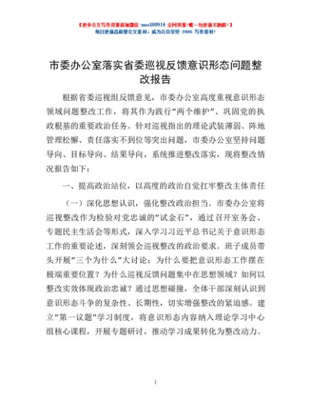 / 市委办公室落实省委巡视反馈意识形态问题整改报告