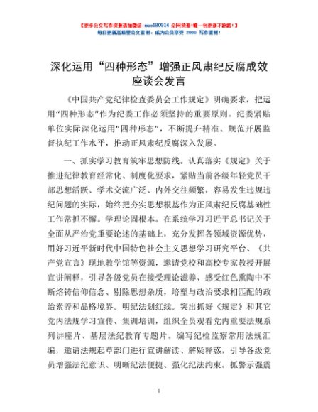 / 深化运用“四种形态” 增强正风肃纪反腐成效座谈会发言