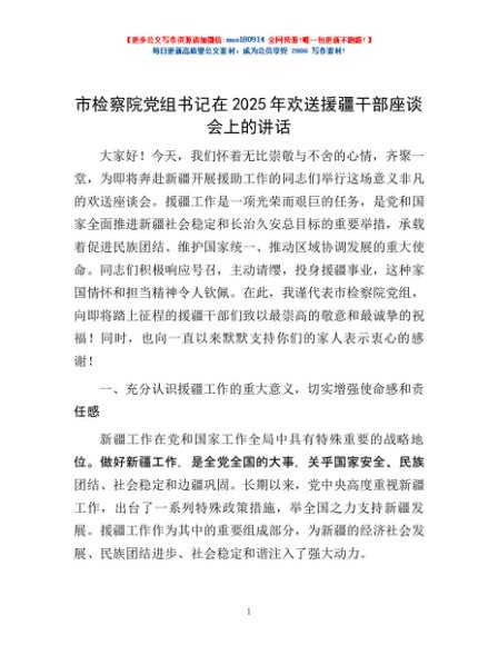 / 市检察院党组书记在2025年欢送援疆干部座谈会上的讲话