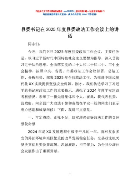 / 县委书记在2025年度县委政法工作会议上的讲话