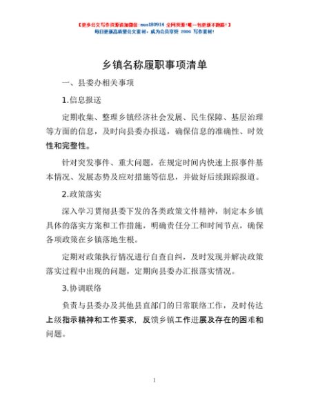 乡镇名称履职事项清单