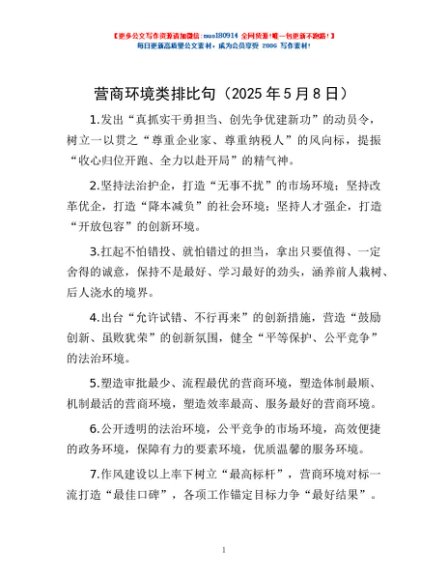 / 营商环境类排比句(2025年5月8日)