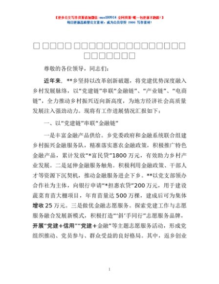 / 在2025年全县党建引领乡村振兴工作推进会上的汇报发言