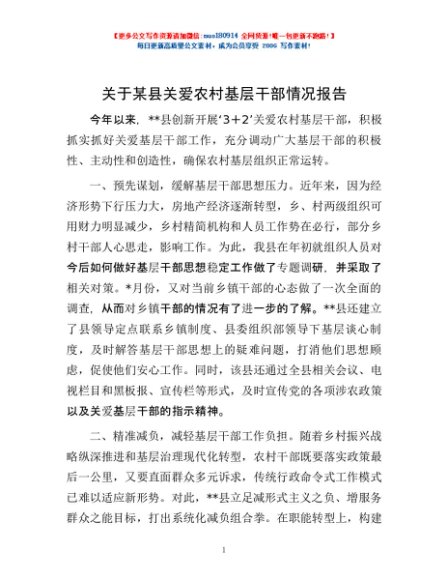 / 关于某县关爱农村基层干部情况报告