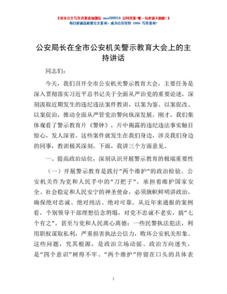 / 公安局长在全市公安机关警示教育大会上的主持讲话