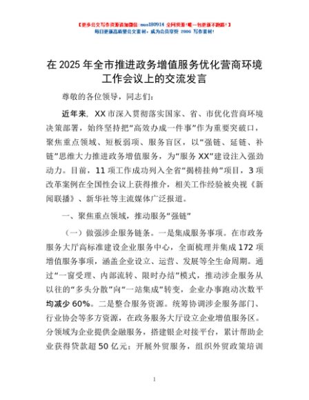 / 在2025年全市推进政务增值服务优化营商环境工作会议上的交流发言