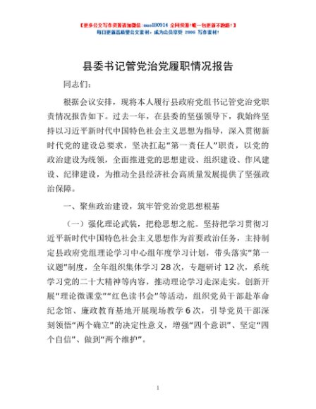 / 县委书记管党治党履职情况报告