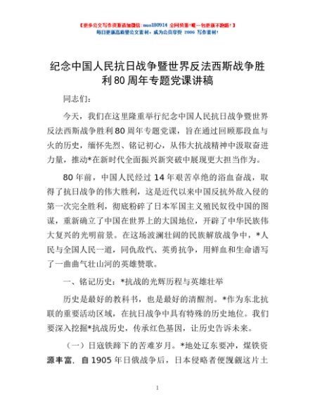 / 纪念中国人民抗日战争暨世界反法西斯战争胜利80周年专题党课讲稿