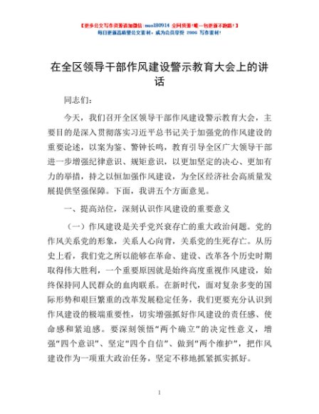 / 在全区领导干部作风建设警示教育大会上的讲话