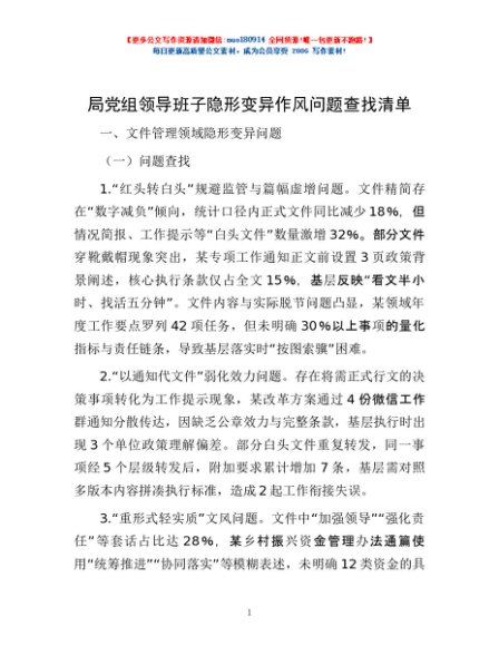 / 局党组领导班子隐形变异作风问题查找清单