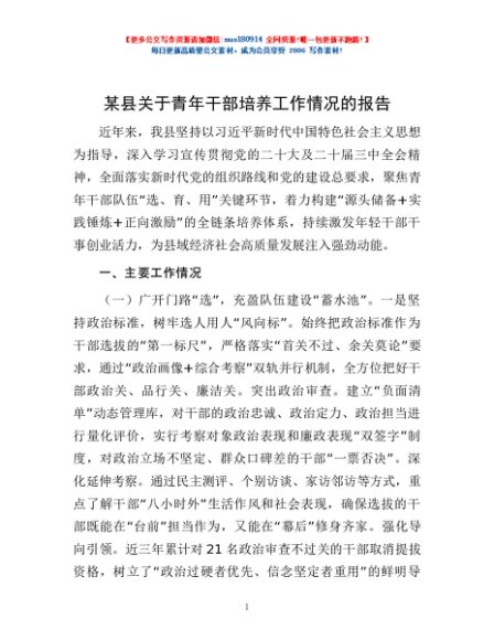 / 某县关于青年干部培养工作情况的报告