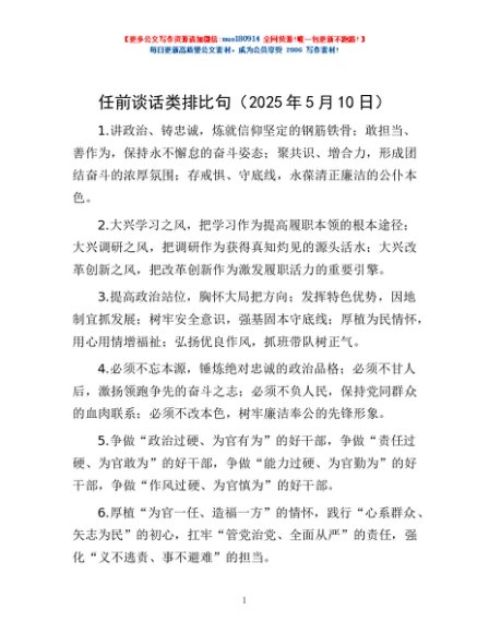 / 任前谈话类排比句(2025年5月10日)