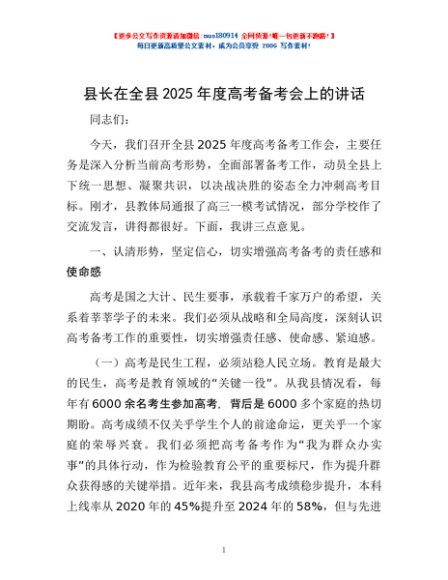 / 县长在全县2025年度高考备考会上的讲话